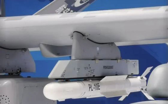 此次展出的翼龍-3掛載了2枚PL-10E空空格斗彈和2枚SD-10空空導彈。