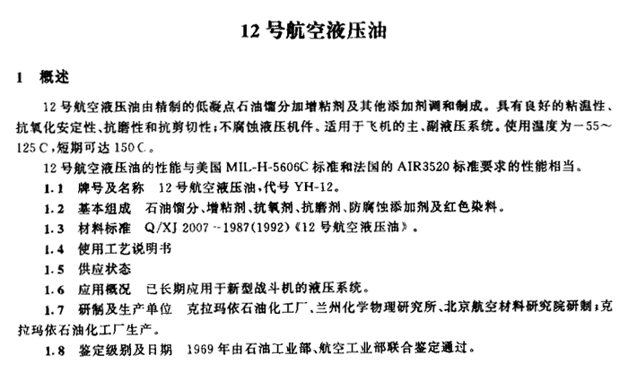12號油由克拉瑪依煉油廠、蘭州化學物理研究所和北京航空材料研究院聯合研制,由克拉瑪依煉油廠生產。該型號于1969年由石油工業部、航空工業部聯合鑒定通過。