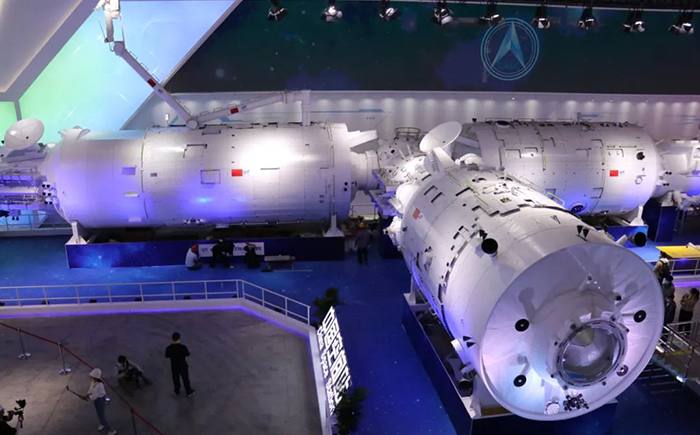 第十四屆中國(guó)航展將迎來(lái)首個(gè)公眾日,航天科技集團(tuán)五院精心打造的中國(guó)空間站組合體1:1展示艙在航展7號(hào)館和大家見面。參展人員可以實(shí)地走進(jìn)艙體內(nèi)部,打卡中國(guó)空間站,感受中國(guó)“太空之家”的恢弘大氣。