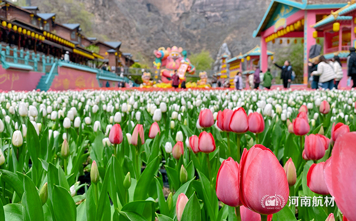 漫步于大峽谷桃源仙境,采購團隊被郁金香花海包圍。恰逢《山河社稷圖》畫卷實景展現,游客穿行花叢,采購經理駐足拍攝時,發現游客的漢服裝扮材質特殊,隨即記錄:這種仿古綢緞明年中秋禮品采購可參考。